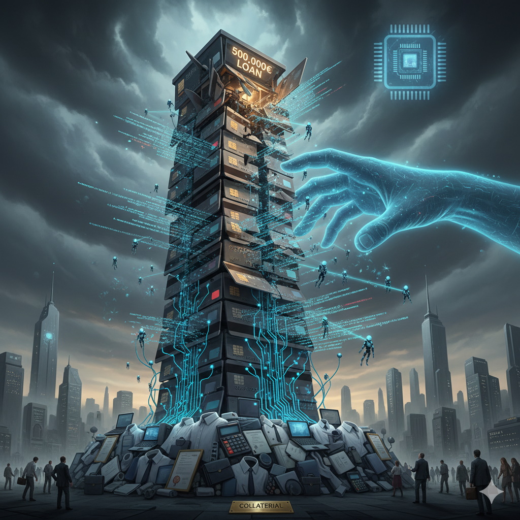 Dein bisheriger Marktwert von 120–180 Euro pro Stunde wird dadurch nicht komplett null, aber massiv entwertet. Dein Kredit basiert plötzlich auf einem Asset, dessen ökonomischer Wert innerhalb von Monaten dramatisch sinkt.
