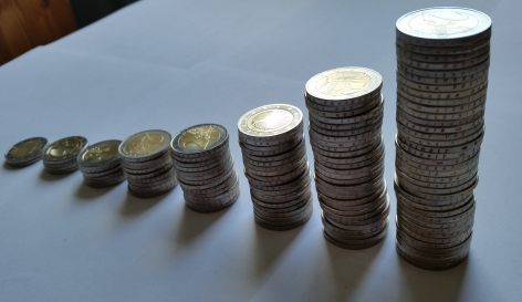 Eine spielerische Form des Sparens ist das Sammeln von Zwei-Euro-Münzen. Nach einiger Zeit kommt dadurch eine beachtlicher Geldbetrag zusammen.