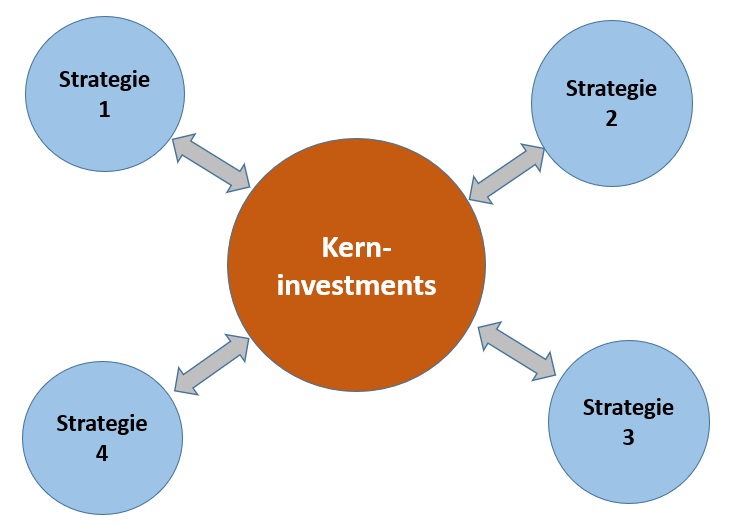 Das Ertragsdepot ist letztendlich als eine zusätzliche Strategie von bereits vorhandenen Kerninvestments zu sehen, bestehend aus Index-ETFs bzw. diversifizierte Einzel-Aktien, wie es folgende Grafik zeigt. Wie man sein Kernportfolio inklusive etwaiger zusätzlicher Strategien so selbst zusammenstellt, dass man nicht schlechter als die durchschnittliche Marktrendite, sondern eher sogar besser abschneidet, besprechen wir ausführlich und detailliert in der Passiver Geldfluss Academy.